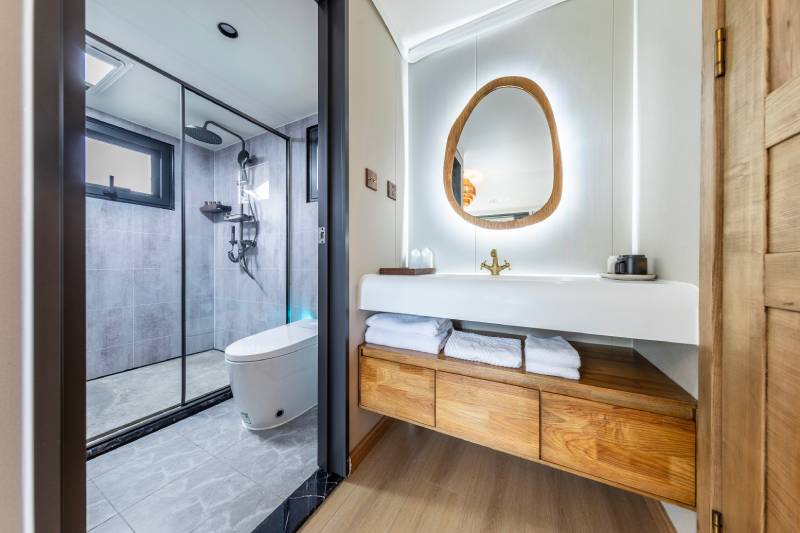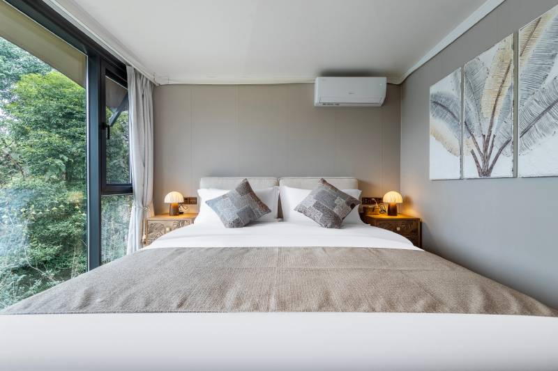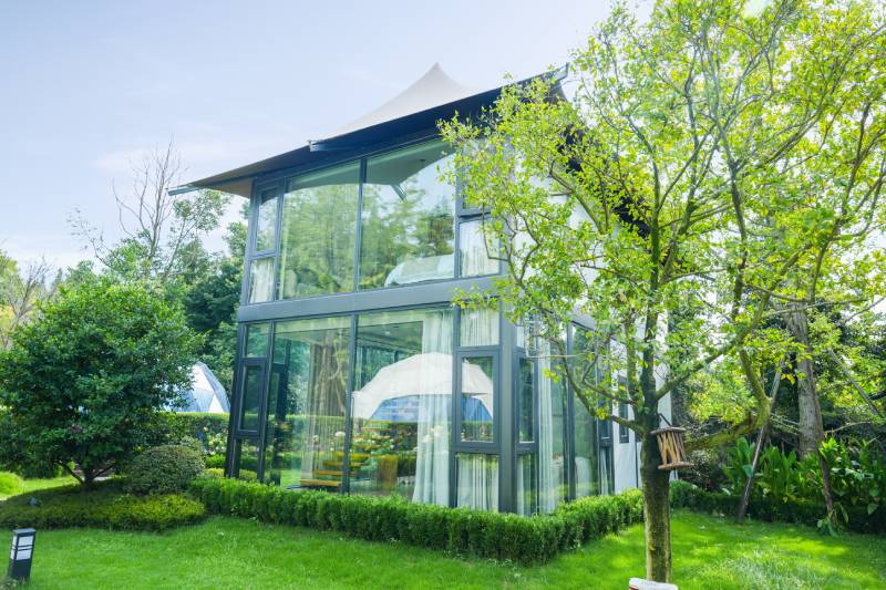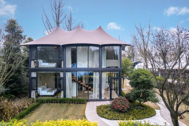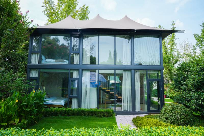 Three-sided double-layer tempered glass walls provide outstanding thermal insulation, soundproofing, wind resistance, and scenic views.