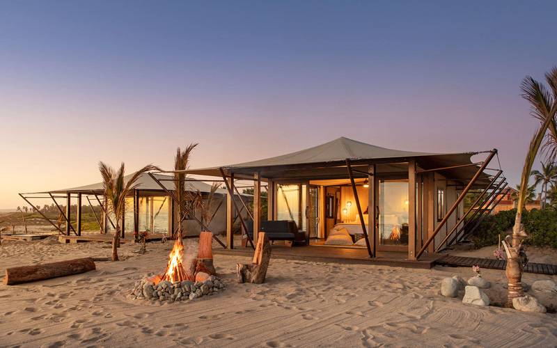 · A popular configuration divides the tent into a bedroom, bathroom, and a charming balcony for a spacious yet private living experience