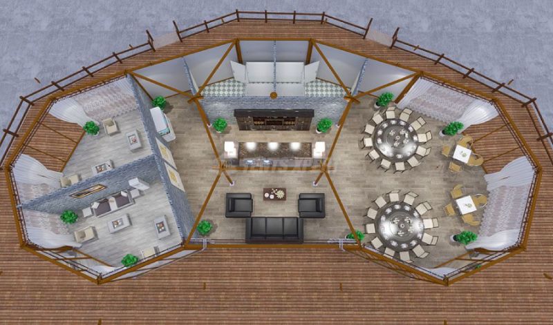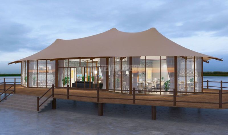 The large galss wall tent is heavy-duty tent. The frame assembled from galvanized steel is the strongest stability of the tent. Even in strong earthquake or storm weather, the tent can still stand firmly on the ground and will not collapse. The highest quality steel is durable and has a service life of up to 15 years, after which it can be recycled, environmentally friendly and economical.