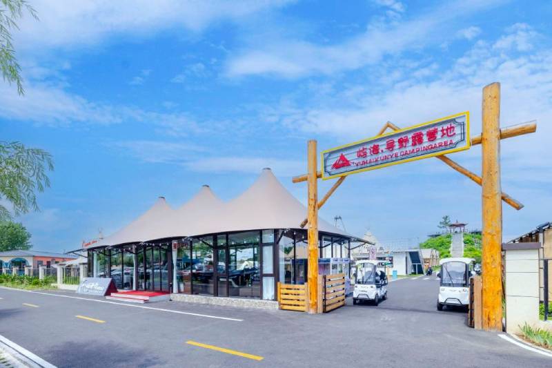 PVDF (Polyvinylidene Fluoride) is a high-performance architectural membrane material known for its weather resistance, anti-pollution properties, and easy maintenance. The roof is covered with PVDF membranes, enhancing insulation and heat resistance. And color is customizable to suit different business branding and design needs.