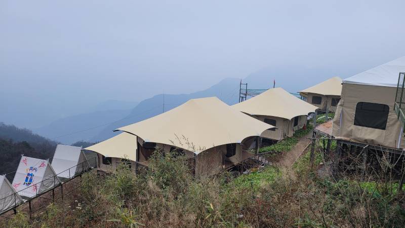 The customizable tent interior allows you to outfit your tent with a bathroom that suits your needs, complete with a washbasin, toilet, and shower, providing the ultimate convenience and luxury during your glamping adventure.