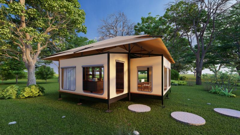 SANI tents are designed to perform well in all weather conditions. This tent can withstand temperatures from -30°C to +40°C, providing personalized comfort. Its sturdy frame can withstand wind speeds of up to 120 km/h and snow loads of 75 kg/m2, ensuring reliability in challenging environments. The frame has a lifespan of over 15 years, providing long-lasting support, while the tear-resistant, water-resistant, flame-retardant, and mildew-resistant fabric ensures a lifespan of 8-10 years.