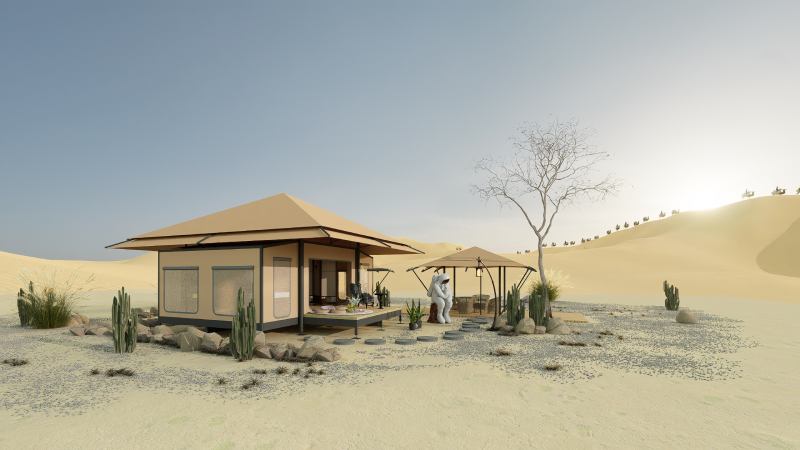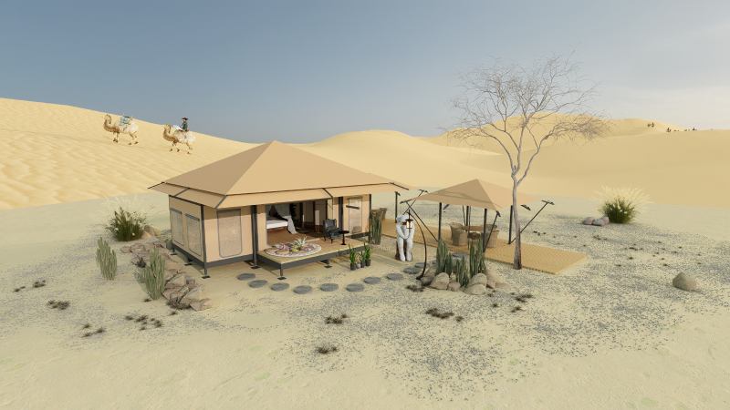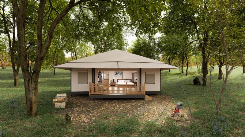 The tent interior is customizable, allowing you to outfit your tent with a bathroom that suits your needs, complete with a washbasin, toilet, and shower, providing the ultimate convenience and luxury during your glamping adventure.